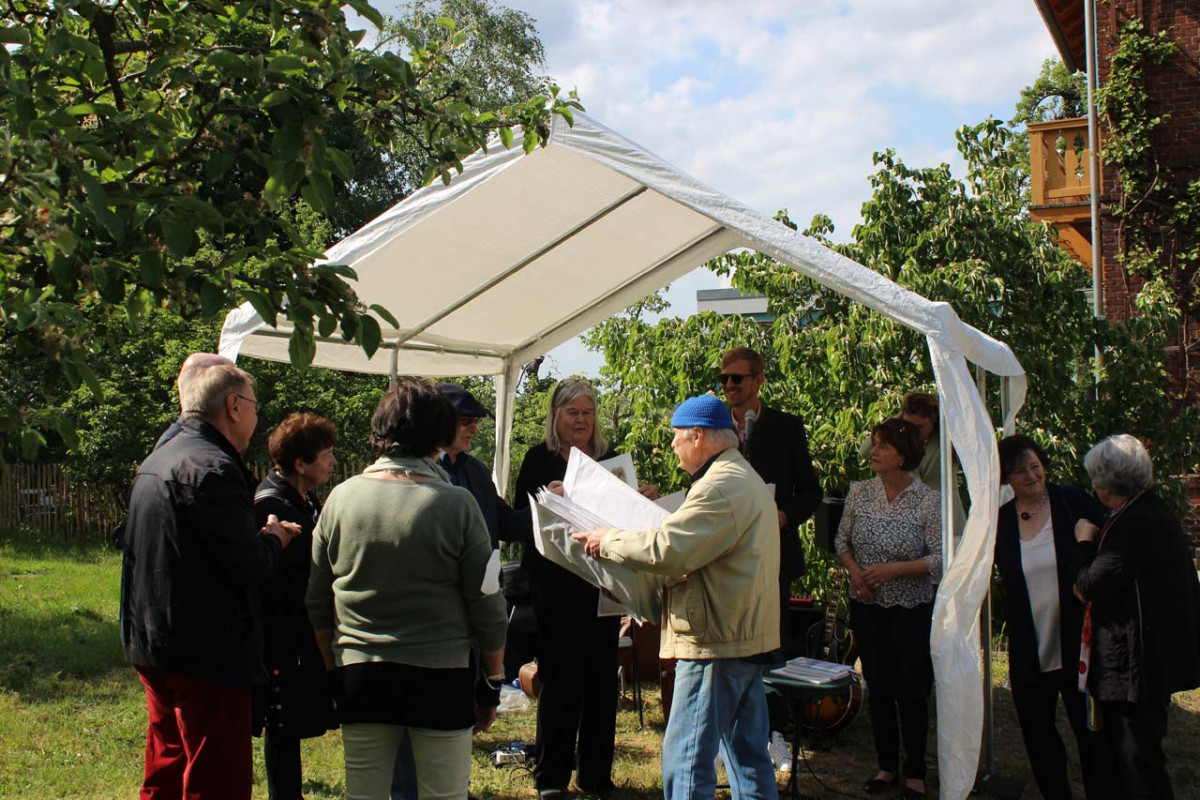 Viele Gäste waren der Einladung gefolgt, um diesem besonderen Ereignis beizuwohnen. Die Begrüßungsreden hielten Andre Queling (Vorsitzender der Stiftung Roger Loewig Haus), Roland Leisegang (Bürgermeister Bad Belzig), Wolfgang Woizick (einer der Stifter) und Krista Maria Schädlich (Vorstandsvorsitzende der Roger Loewig Gesellschaft).